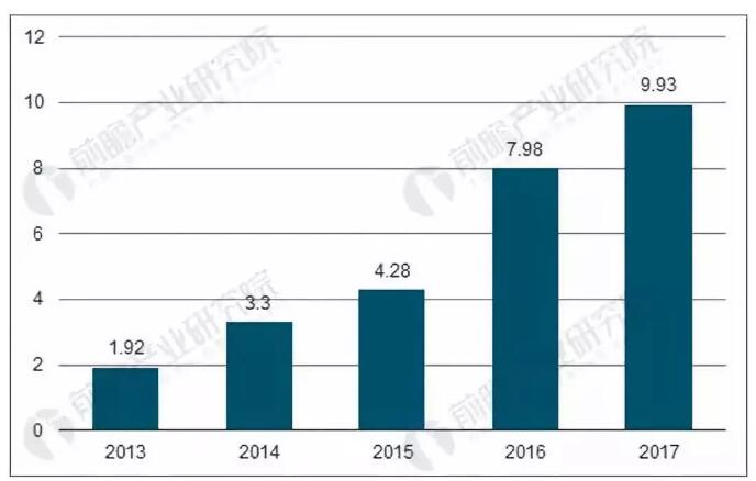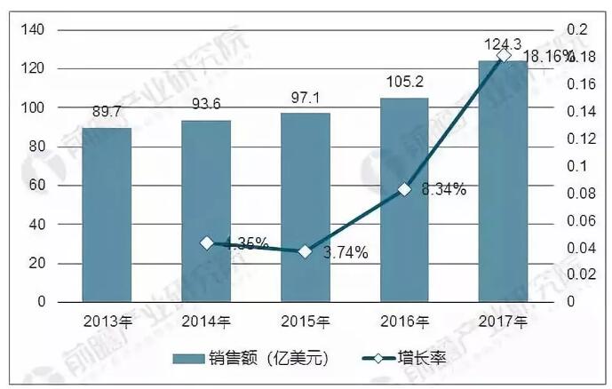 根据前瞻产业研究院发布的《中国激光加工设备制造行业产销需求预测与转型升级分析报告》数据显示,2013-2017年,全球激光器行业收入规模持续增长,从2013年的89.70亿美元增加至2017年的124.30亿美元,年复合增长率为8.50%。随着大功率激光器技术突破和增材制造技术的成熟,预计未来激光器行业将持续快速增长。