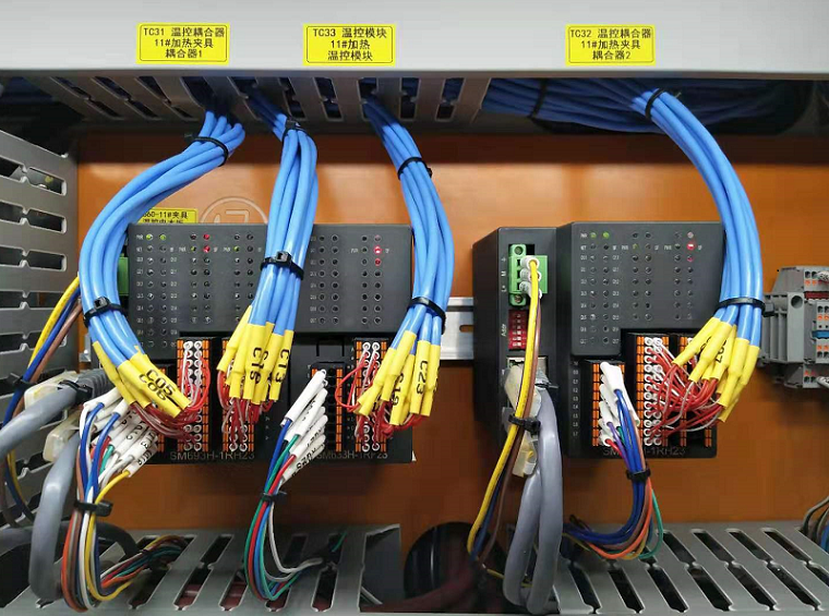 本项目采用欧姆龙主控,通过EtherCAT总线与693H系列温度控制器进行高速通讯, 每个693H站点集成40路温控,参数自整定,控制精度高,体积小,安装调试方便,有效缩短项目实施工期。
