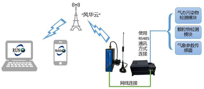 微型空气监测站由PLC控制器、气态污染物检测模块、颗粒物检测模块、气象参数传感器、远程控制单元、供电及电源管理单元等组成。