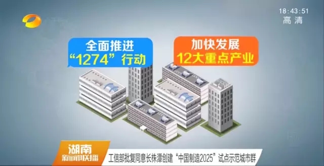 11月14日,省经信委向工信部呈送了申请,请求将长株潭城市群(含长沙、株洲、湘潭3市)确定为“中国制造2025”城市试点示范。工信部批复要求,湖南省要全面贯彻创新、协调、绿色、开放、共享的发展理念,深入实施《中国制造2025》,坚持“创新驱动、质量为先、绿色发展、结构优化、人才为先”的基本方针,以推进制造业转型升级和提质增效为核心,以加快新一代信息技术与制造业深度融合为主线,以深化改革、扩大开放为动力,转方式、调结构、抓创新,全面推进“1274”行动,加快发展12大重点产业,大力实施7大专项行动,着力打造制造强省4大标志性工程,巩固提升领先优势,充分发挥比较优势,拓展放大潜在优势,形成极具特色和竞争力的长沙“麓谷”、株洲“动力谷”和湘潭“智造谷”协同错位特色发展的产业新格局,推进制造业向网络化、智能化、绿色化、服务化发展,打造“中国制造2025”长株潭城市群示范引领区,加快实现制造大省向制造强省的新跨越,为实施制造强国战略作出新贡献。