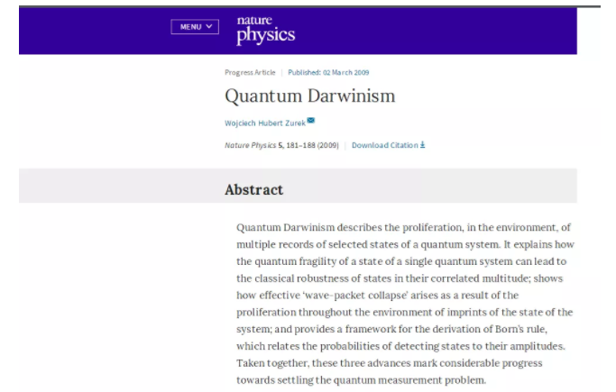 又有很多物理学家尝试解释这样的现象,其中最有代表性的理论就是量子达尔文主义。