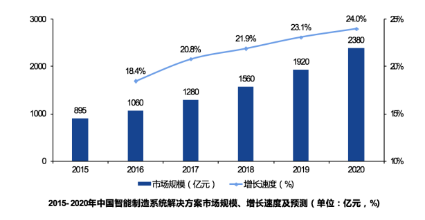 智能制造系统解决方案供应商在智能制造的推进过程中起到至关重要的作用。智能制造工程实施三年以来,我国顶层规划、试点示范、标准体系建设有效推进,全社会智能制造的氛围逐步形成。2017年,中国智能制造系统解决方案市场规模达1280亿元,同比增长20.8%;2018年市场规模约为1560亿元,同比增长21.9%。