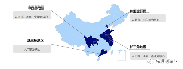 珠三角地区:加快机器换人,逐步发展成为“中国制造”主阵地。其中,广州围绕机器人及智能装备产业核心区建设,深圳重点打造机器人、可穿戴设备产业制造基地、国际合作基地及创新服务基地。