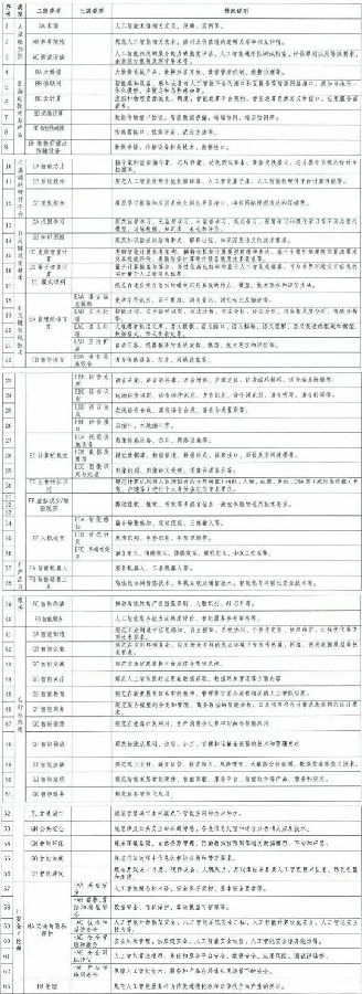 (一)指导思想。 面贯彻党的十九大和十九届二中、三中、四中全会精神,落实党中央、国务院关于发展新一代人工智能的决策部署,以市场驱动和政府引导相结合,按照“统筹规划,分类施策,市场驱动,急用先行,跨界融合,协同推进,自主创新,开放合作”原则,立足国内需求,兼顾国际,建立国家新一代人工智能标准体系,加强标准顶层设计与宏观指导。加快创新技术和应用向标准转化,强化标准的实施与监督,促进创新成果与产业深度融合。注重与智能制造、工业互联网、机器人、车联网等相关标准体系的协调配套。深化人工智能标准国际交流与合作,注重国际国内标准协同性,充分发挥标准对人工智能发展的支撑引领作用,为高质量发展保驾护航。 (二)建设目标。 2021年,明确人工智能标准化顶层设计,研究标准体系建设和标准研制的总体规则,明确标准之间的关系,指导人工智能标准化工作的有序开展,完成关键通用技术、关键领域技术、伦理等20项以上重点标准的预研工作。 2023年,初步建立人工智能标准体系,重点研制数据、算法、系统、服务等重点急需标准,并率先在制造、交通、金融、安防、家居、养老、环保、教育、医疗健康、司法等重点行业和领域进行推进。建设人工智能标准试验验证平台,提供公共服务能力。 (一)人工智能标准体系结构。 人工智能标准体系结构包括“A基础共性”“B支撑技术与产品”“C基础软硬件平台”“D关键通用技术”“E关键领域技术”“F产品与服务”“G行业应用”“H安全/伦理”等八个部分,如图1所示。 其中,A基础共性标准包括术语、参考架构、测试评估三大类,位于人工智能标准体系结构的最左侧,支撑标准体系结构中其它部分; B支撑技术与产品标准对人工智能软硬件平台建设、算法模型开发、人工智能应用提供基础支撑; C基础软硬件平台标准主要围绕智能芯片、系统软件、开发框架等方面,为人工智能提供基础设施支撑; D关键通用技术标准主要围绕机器学习、知识图谱、类脑智能计算、量子智能计算、模式识别等方面,为人工智能应用提供通用技术支撑; E关键领域技术标准主要围绕自然语言处理、智能语音、计算机视觉、生物特征识别、虚拟现实/增强现实、人机交互等方面,为人工智能应用提供领域技术支撑; F产品与服务标准包括在人工智能技术领域中形成的智能化产品及新服务模式的相关标准; G行业应用标准位于人工智能标准体系结构的最顶层,面向行业具体需求,对其它部分标准进行细化,支撑各行业发展; H安全/伦理标准位于人工智能标准体系结构的最右侧,贯穿于其他部分,为人工智能建立合规体系。 标准研制方向明细表见附表。 (二)人工智能标准体系框架。 人工智能标准体系框架主要由基础共性、支撑技术与产品、基础软硬件平台、关键通用技术、关键领域技术、产品与服务、行业应用、安全/伦理八个部分组成,如图2所示。 图2人工智能标准体系框架 (一)基础共性标准。 基础共性标准主要针对人工智能基础进行规范,包括术语、参考架构、测试评估等部分,如图3所示。 图3基础共性标准 1.术语标准。用于统一人工智能相关概念、技术、应用行业场景,为其他各部分标准的制定和企业人工智能研究提供支撑,包括人工智能术语相关定义、范畴、实例等标准。 2.参考架构标准。规范人工智能相关技术、应用及价值链的逻辑关系和相互作用,为开展人工智能相关标准研制工作提供定位和方向建议。 3.测试评估标准。围绕人工智能技术发展的成熟度、行业发展水平、企业能力等方面提取测试及评估的共性需求。包括与人工智能相关的服务能力成熟度评估、人工智能通用性测试指南、评估原则以及等级要求、企业能力框架及测评要求等标准。 (二)支撑技术与产品标准。 支撑技术与产品标准主要包括大数据、物联网、云计算、边缘计算、智能传感器、数据存储及传输设备等部分,如图4所示。 图4支撑技术与产品标准 1.大数据标准。规范人工智能研发及应用等过程涉及到的数据存储、处理、分析等大数据相关支撑技术要素,包括大数据系统产品、数据共享开放、数据管理机制、数据治理等标。 2.物联网标准。规范人工智能研发和应用过程中涉及到的感知和执行关键技术要素,为人工智能各类感知信息的采集、交互和互联互通提供支撑。包括智能感知设备标准、感知设备与人工智能平台的接口和互操作等智能网络接口、感知与执行一体化模型标准、多模态和态势感知标准等。 3.云计算标准。规范面向人工智能的云计算平台、资源及服务,为人工智能信息的存储、运算、共享提供支撑。包括虚拟和物理资源池化、调度,智能运算平台架构,智能运算资源定义和接口、应用服务部署等标准。 4.边缘计算标准。规范人工智能应用涉及的端计算设备、网络、数据与应用。包括数据传输接口协议、智能数据存储、端端协同、端云协同等标准。 5.智能传感器标准。规范高精度传感器、新型MEMS传感器等,为人工智能的硬件发展提供标准支撑,包括传感器接口、性能评定、试验方法等标准。 6.数据存储及传输设备标准。用于规范数据存储、传输设备相关技术、数据接口等。 (三)基础软硬件平台标准。 基础软硬件平台标准主要包括智能芯片、系统软件、开发框架等部分,如图5所示。 图5基础软硬