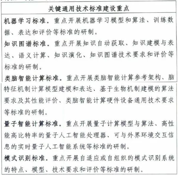 1.智能芯片标准。规范智能计算芯片、新型感知芯片及相关底层接口等,为人工智能模型的训练和推理提供算力支持。包括指令集和虚拟指令集、芯片性能、功耗测试要求、数据交换格式、芯片操作系统的设计及检测等标准。