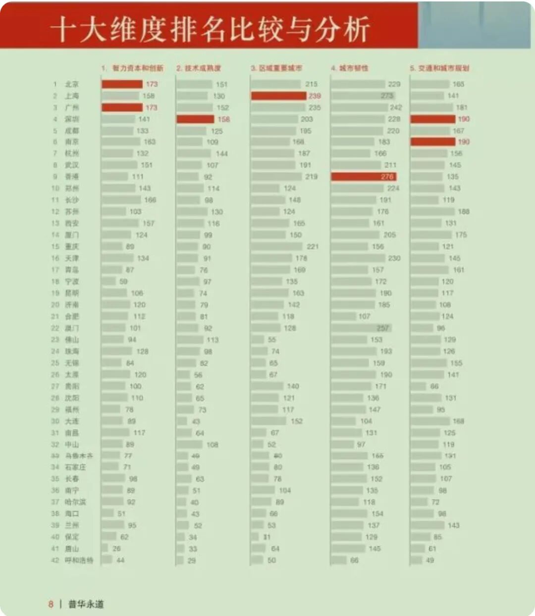 中国发展研究基金会与普华永道联合发布的《机遇之城2020》报告显示,从城市机遇发展情况观察结果来看,排在前10位的城市依次是▼ 北京、上海、广州、深圳、成都、南京、杭州、武汉、香港、郑州。 梳理来看,北京、上海继续保持冠、亚军地位。广州、深圳超过香港位于第三、四位。与去年相比,香港跌落前三,下滑至第九;成都、南京超越杭州,武汉位次不变,郑州跻身十强。